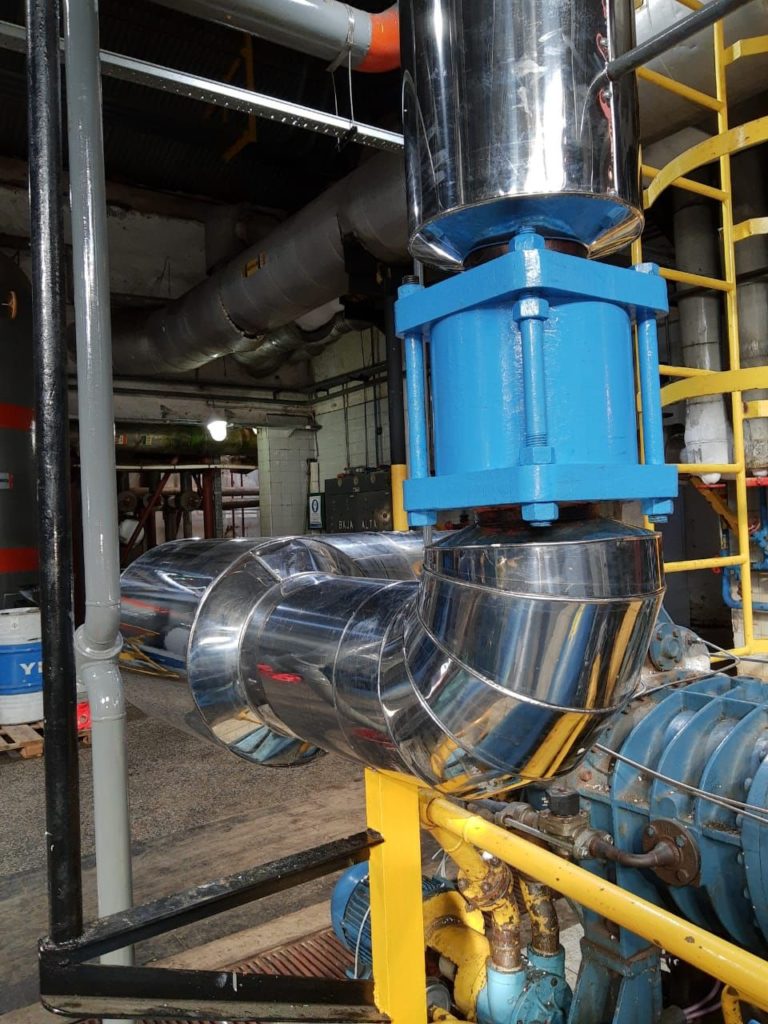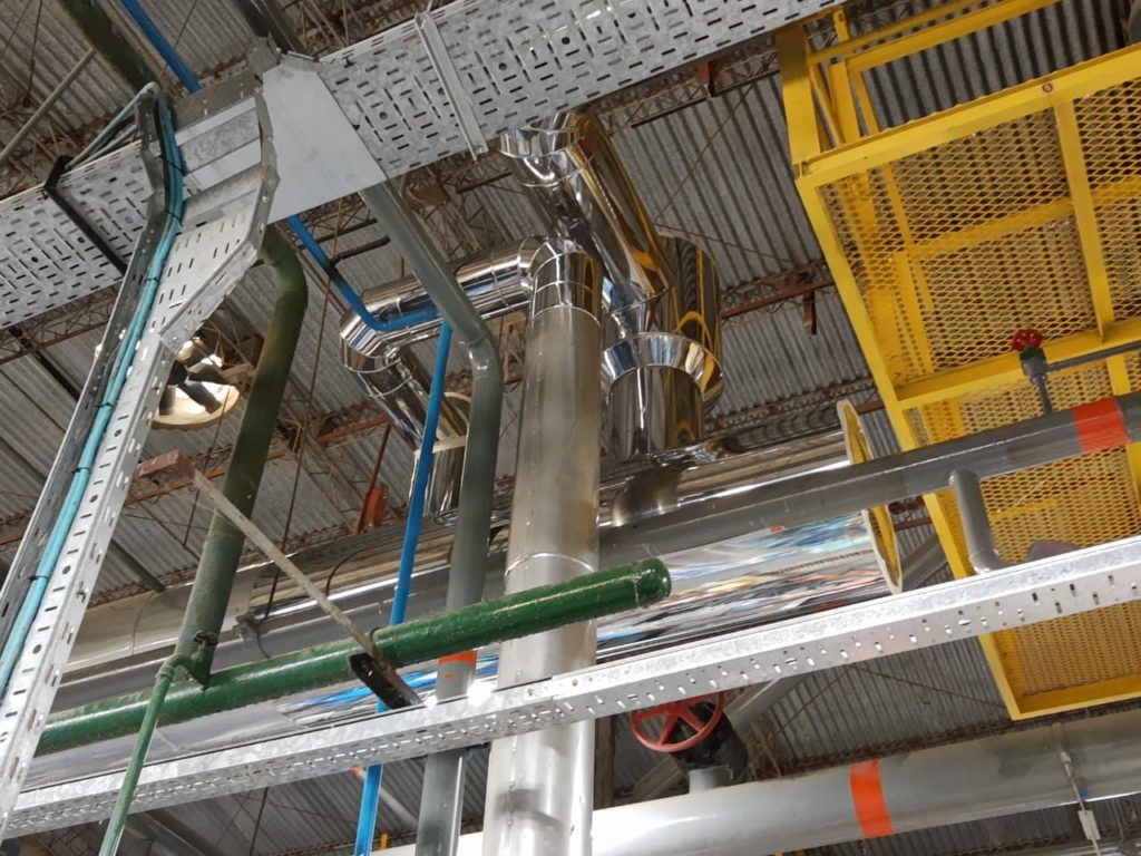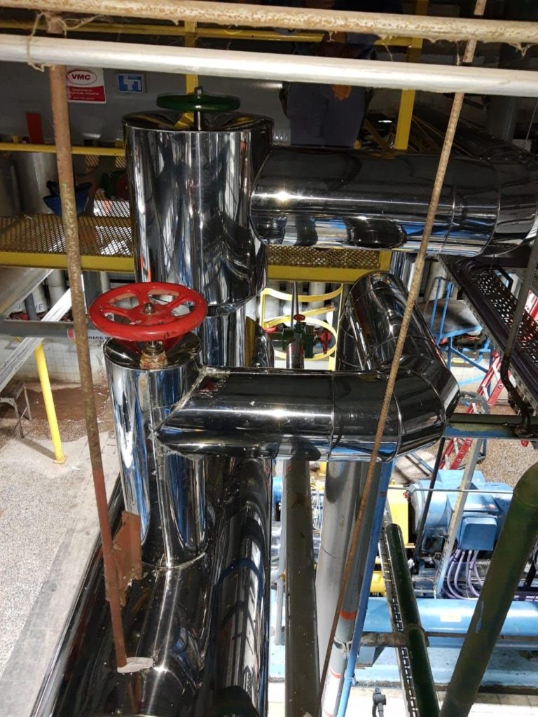 Aislación completa, colocación de capa aislante y recubrimiento en chapa acero inoxidable.