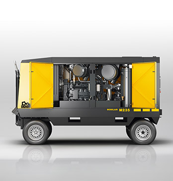 Compresor M- 235, diseñado para brindar un servicio continuo en obras en condiciones climáticas adversas (más de 3000 m.s.n.m. o temperaturas ambientales hasta 50°C).