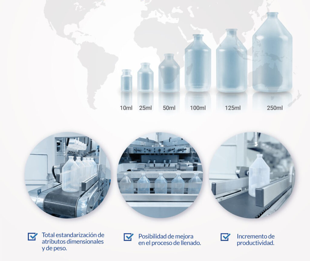 Tenemos una amplia gama de matricería para fabricar envases específicos que resistan compuestos químicos diversos y procesos de esterilización. Podemos desarrollar productos a medida, según tus requerimientos.