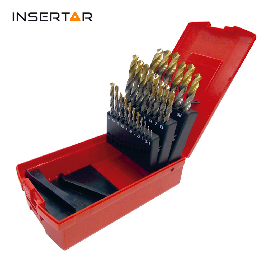 Juegos de brocas HSS en norma DIN338. Opción en brocas revestidas en TiN, brillantes o revenidas al vapor (negras).